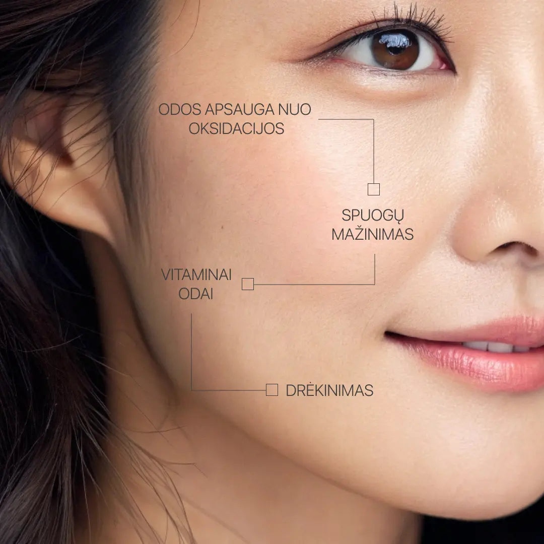 Antioksidantų duetas, kutis palaiko kolageno gamybą, mažina senėjimo požymius ir saugo odą nuo pažeidimų.